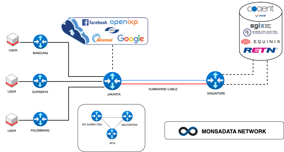 MegaPOP Monsadata saat ini ada di Jakarta sedangkan untuk POP Distribusi ada di Bandung, Surabaya, Palembang, Makassar & Balikpapan.